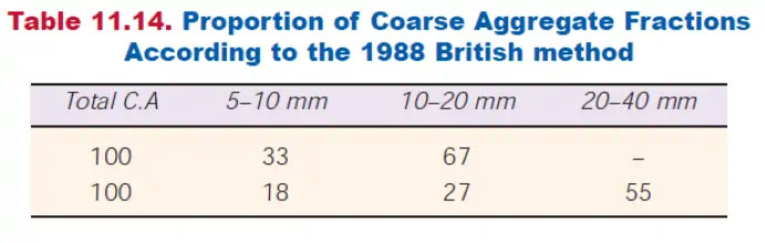 Coarse aggregate can be further divided into different fractions depending on the shape of aggregate. As general guidance, the figures given in Table 11.14 can be used.