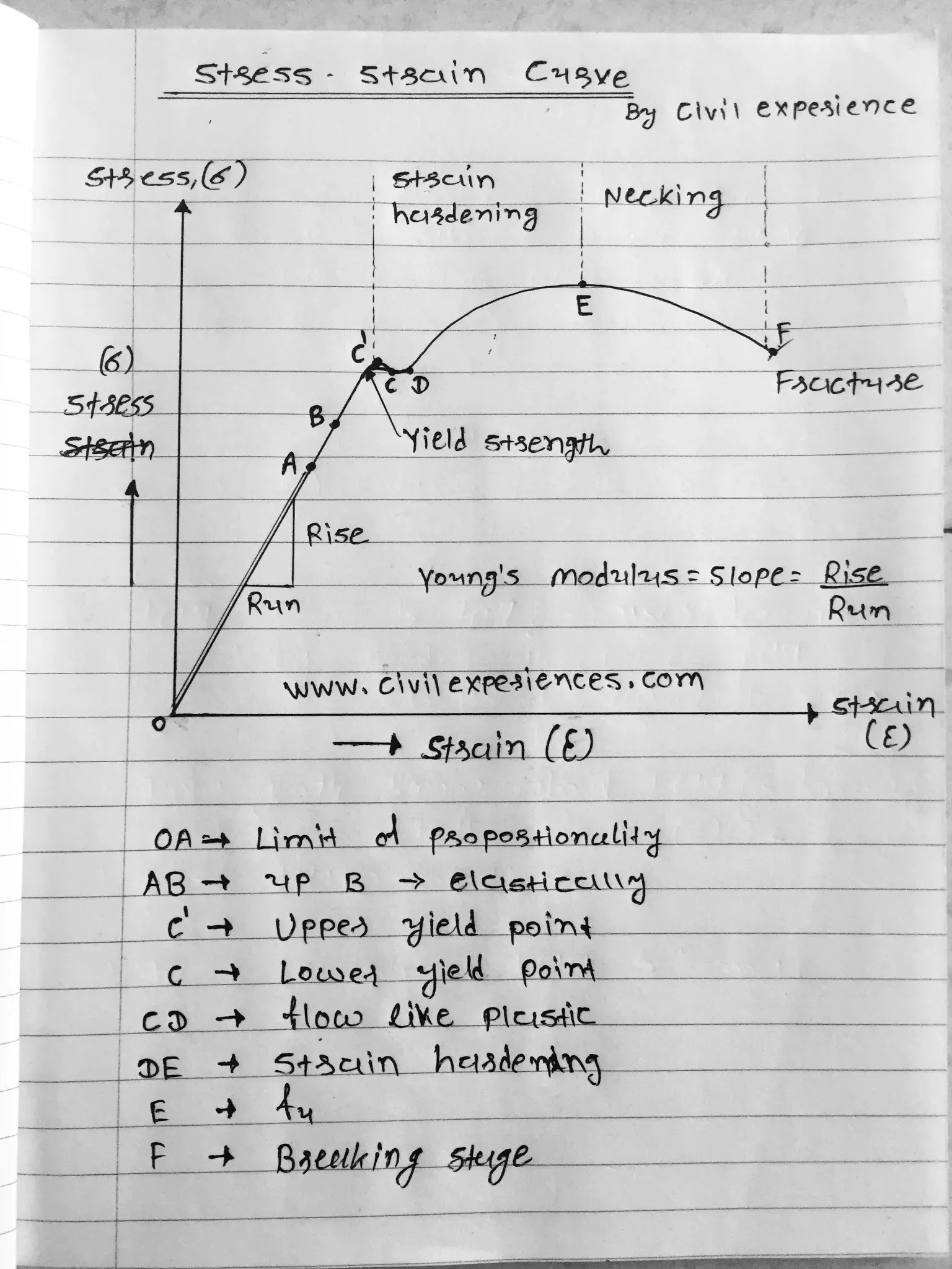 Plastic part So it means it flows like plastic and without any increase of the stress the strain increases then up to point E