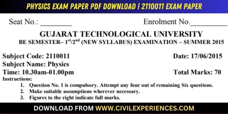 DOWNLOAD BE 1st SEM Physics GTU Paper 2110011 SUMMER 2015 PDF | Download GTU BE 2015 1st Year 1st Semester SUMMER 2015 2110011 Physics Question paper | 2110011 | Physics