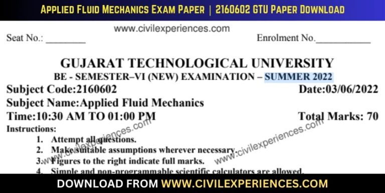 DOWNLOAD BE 6th SEM Applied Fluid Mechanics GTU Paper 2160602 SUMMER 2022 PDF | Download GTU BE 2022 3rd Year 6th Semester SUMMER 2022 2160602 Applied Fluid Mechanics Question paper | 2160602 | Applied Fluid Mechanics