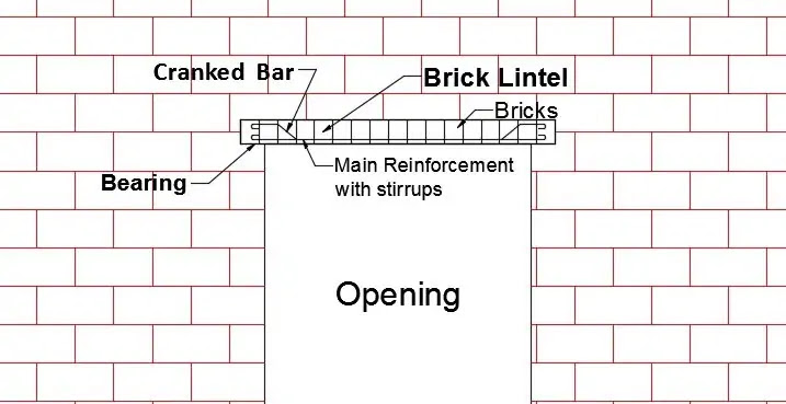 Brick lintel is normally taken into construction work where the opening is less than 1 meter and also where load coming on it is less